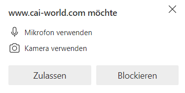 Voraussetzung: Der Browser benötigt Zugriff auf Ihre Kamera. Eine Erläuterung hierzu finden Sie auf der rechten Seite.