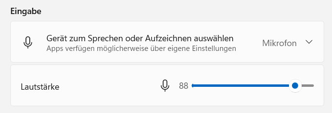 Schlägt der Pegel überhaupt nicht aus, prüfen Sie bitte, ob Ihr Mikrofon eingeschaltet und aktiv ist. In Windows sind die Einstellungen dazu bei "Sound" im Abschnitt "Eingabe" zu finden, bei macOS in den Systemeinstellungen unter "Ton".